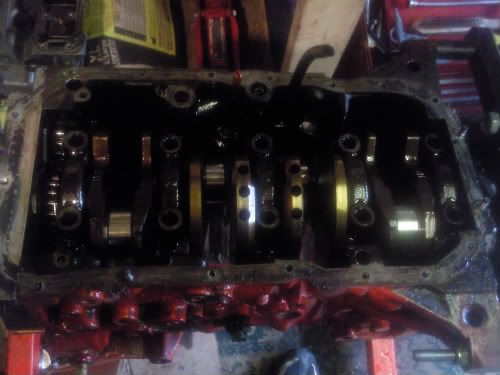 crank was checked and polished, and was fine, std size bearings ok to be used. block bored no problems.