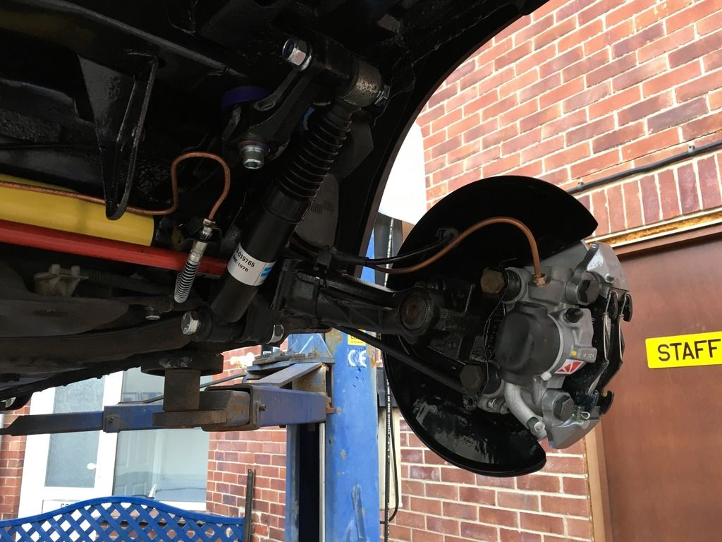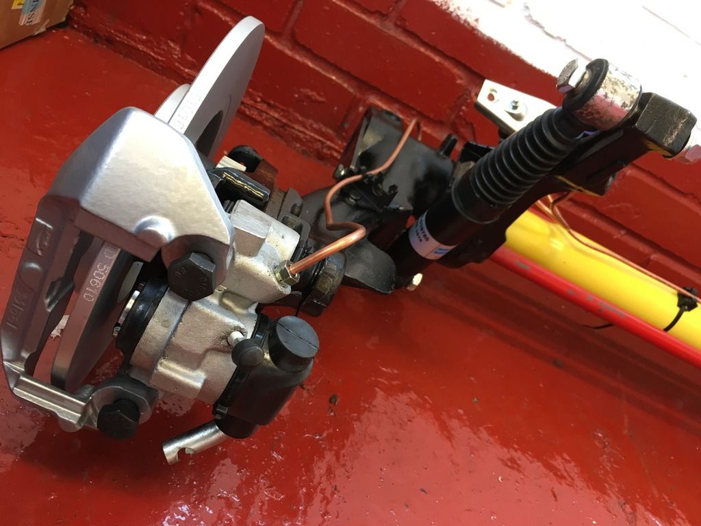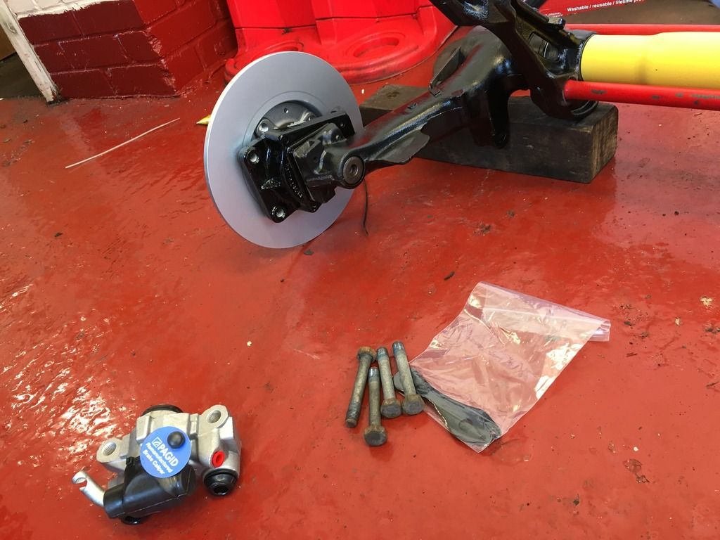 Began by doing the usual bits, exhaust off, disconnect brake lines etc...