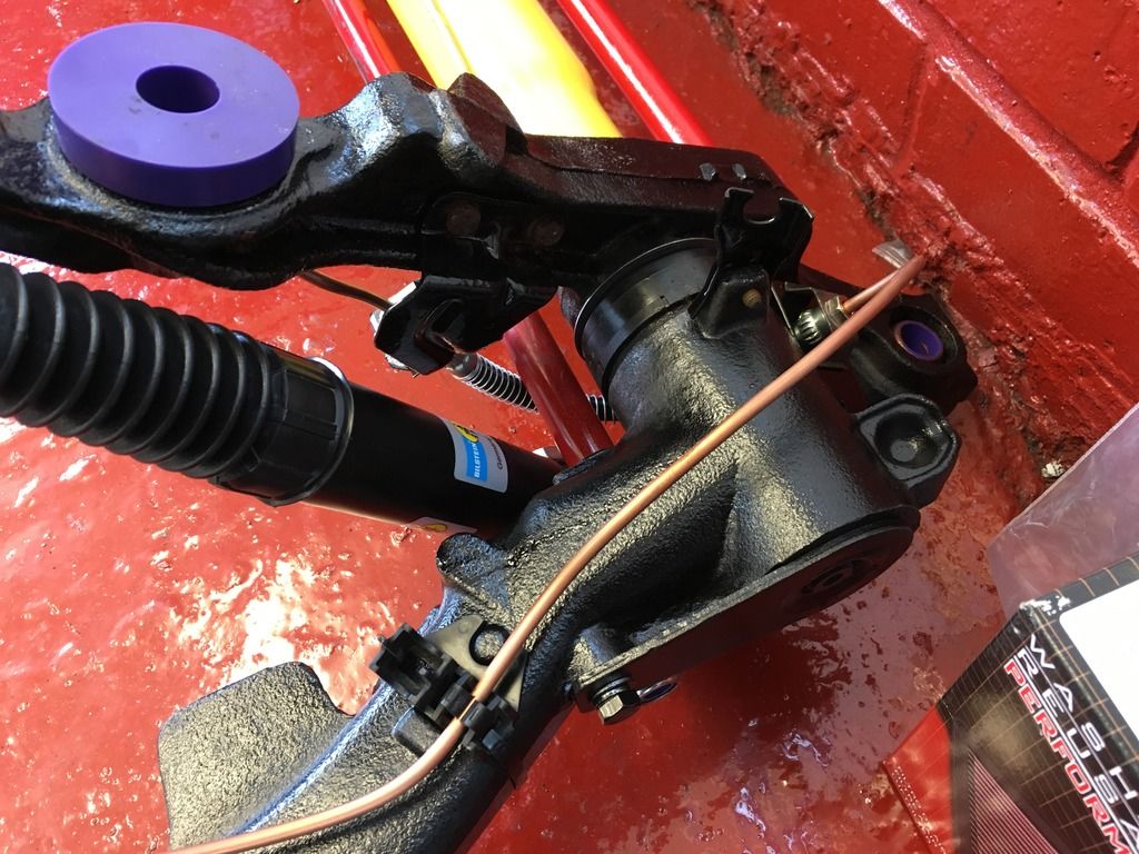 Pads in and brake lines connected, it was all looking rather snazzy.