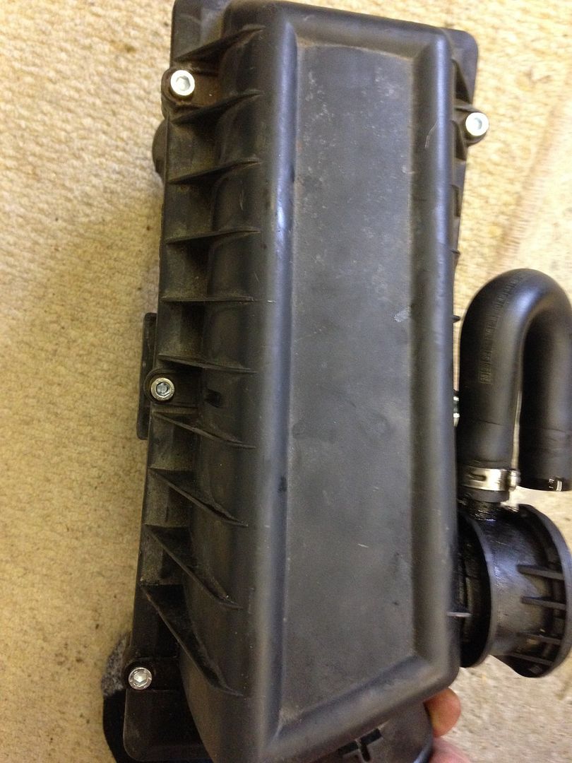 As you can see, I had to drill out the standard screw holes as they were all turning, Ive done a nice bolt and nut fix, just need to clean the airbox up now.