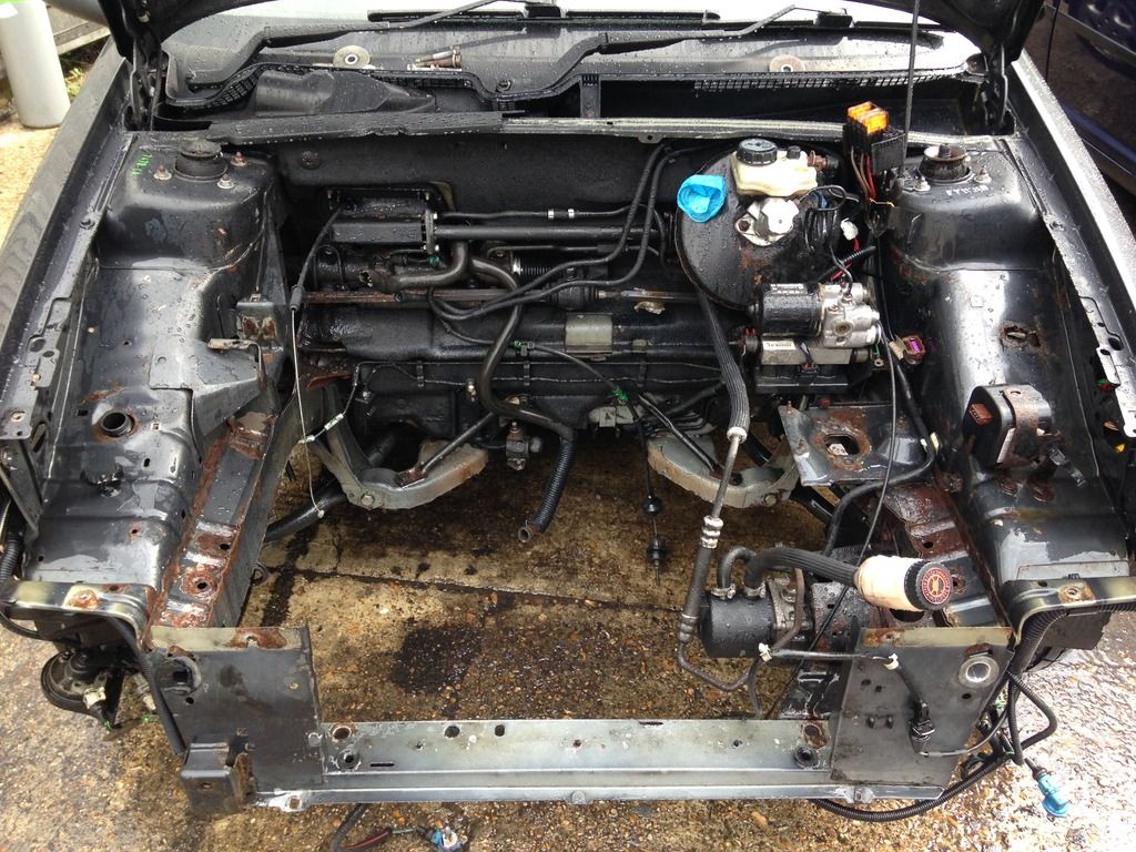 Rolled the car into the garage and got to work stripping the last few engine bay bits and took the struts out ready for powder coating.