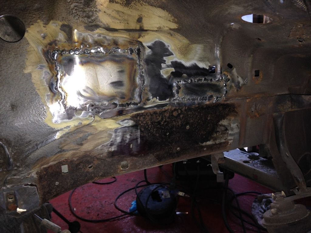 I made the decision to weld up the inspection hole rather than cutting a new one into the repair panel, the way I look at it, it serves no purpose and is really another area for the car to start rotting when water and dirt gets stuck to the grommet. Again, just need to flush the welds to make it look nice tomorrow.