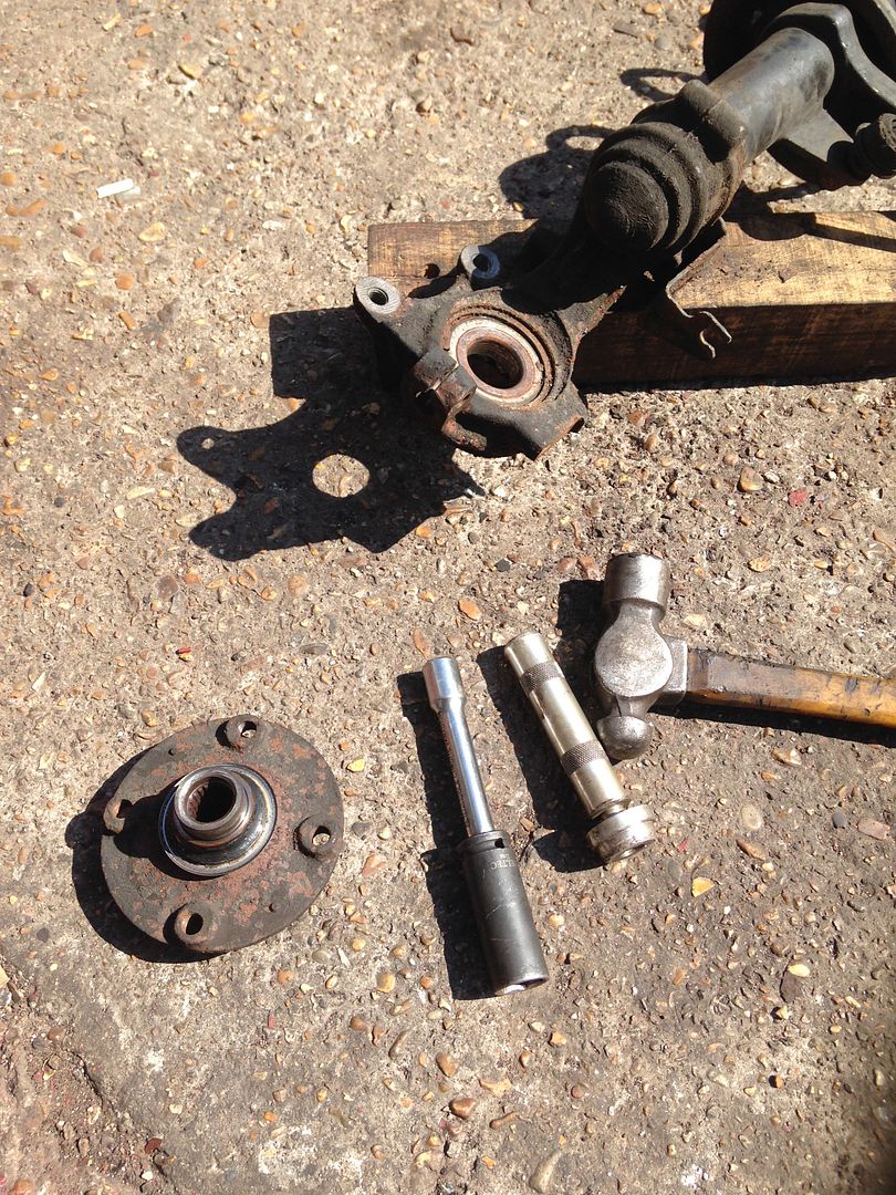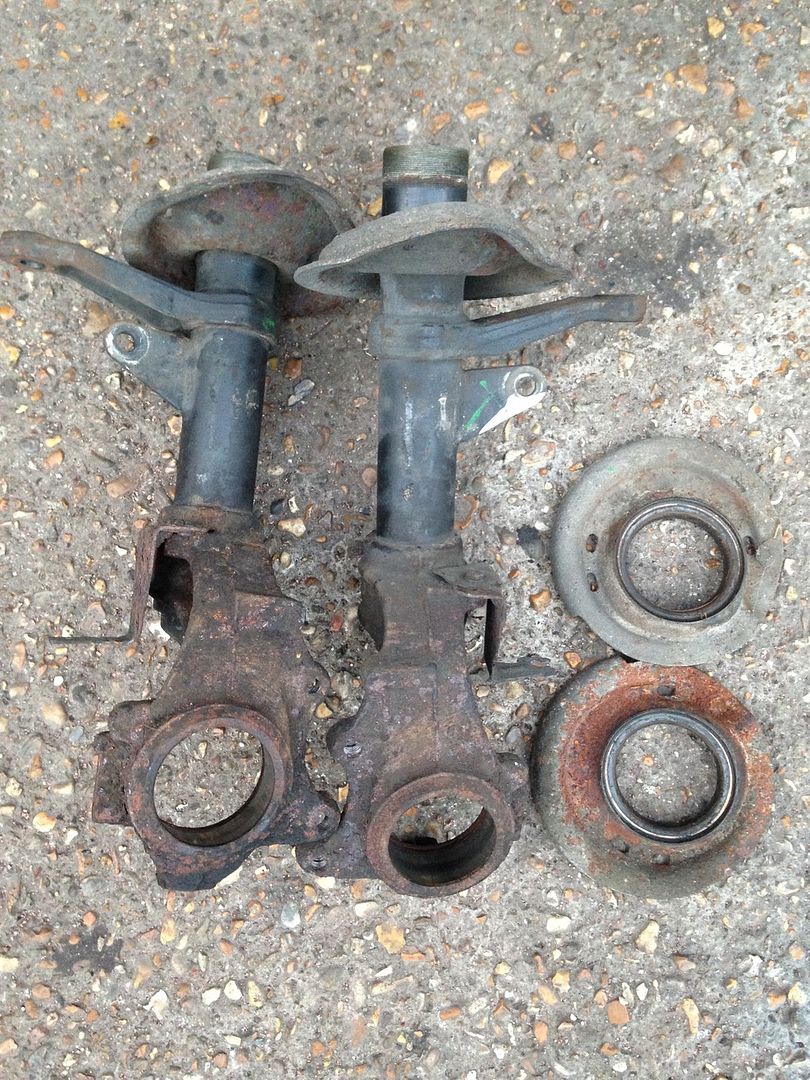 And finally I pressed out the old wheel bearings... they were really in there! I had to ramp the press up to 12 tones to get them out :O But the legs are stripped and ready to be dropped off at the powdercoaters tomorrow morning with a box of other bits at 6am!