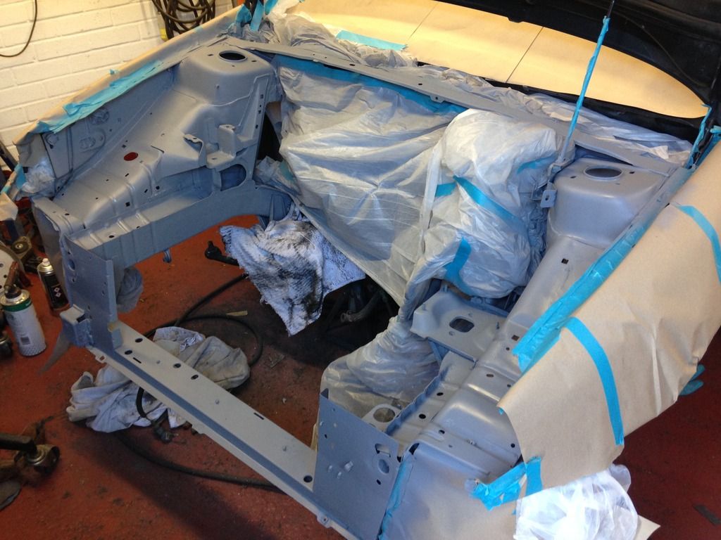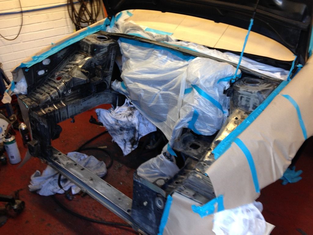 Made some nice progress today, got the engine bay sanded down and masked up ready for some primer.