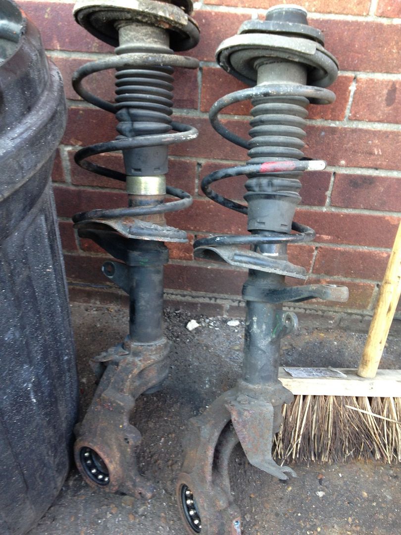 I cut the old drop links off, the spring compressor has gone walkies and I can't budge the circlips on the wheel bearings so I'll return to them tomorrow.
